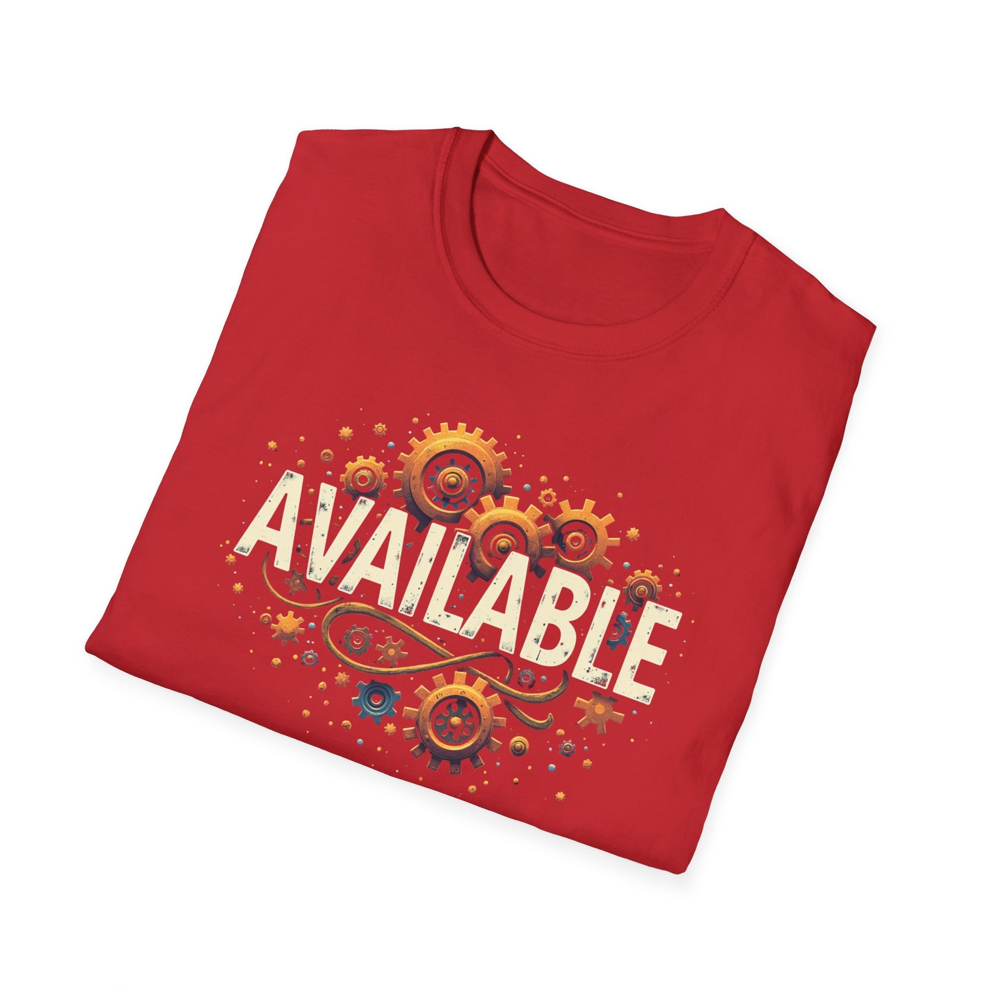 A unisex softstyle T-shirt with a "Available" design . This comfortable and durable garment is perfect for printing, made with specially spun fibers. It provides a versatile style that can match any occasion, whether formal or semi-formal, giving off a positive and inclusive vibe. Suitable for adults and relevant for occasions celebrating love and positivity.