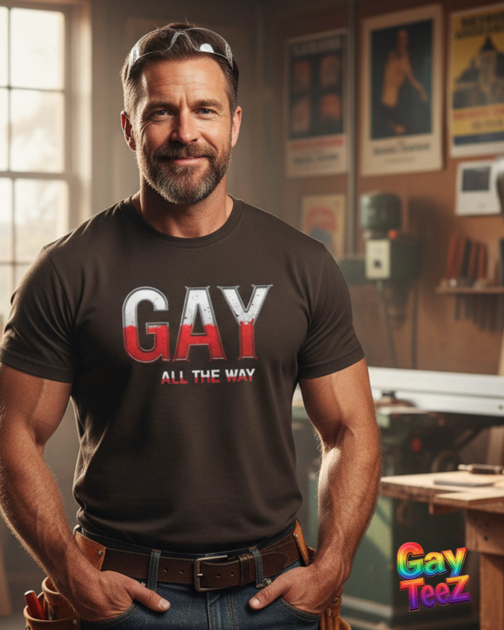 Gay All the Way Tee – Strong, confident, and proudly unapologetic. This design blends classic grit with modern Pride attitude, making it perfect for guys who wear their identity with strength and style. Whether you’re in the shop, on the street, or out celebrating, this tee says you’re here, you’re proud, and you’re not backing down—ever.